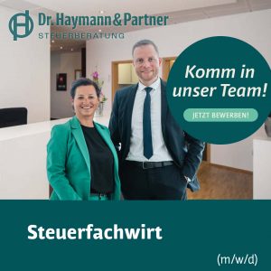 Dr. Haymann & Partner – ist eine moderne, überregional tätige Steuerkanzlei mit unendlichen Möglichkeiten. Hierbei legen die rund 20 Mitarbeiter (m/w/d) den größten Wert auf die kollegiale Zusammenarbeit untereinander und die kompetente und herzliche Betreuung der Mandanten (m/w/d). Der familiäre Umgang miteinander hat im gesamten Unternehmen einen sehr hohen Stellenwert.